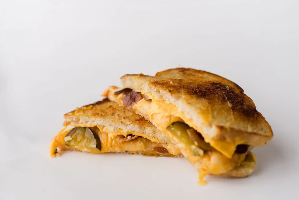 The incredible 5 cheese blend, melted with crispy bacon & pickles on grilled sourdough